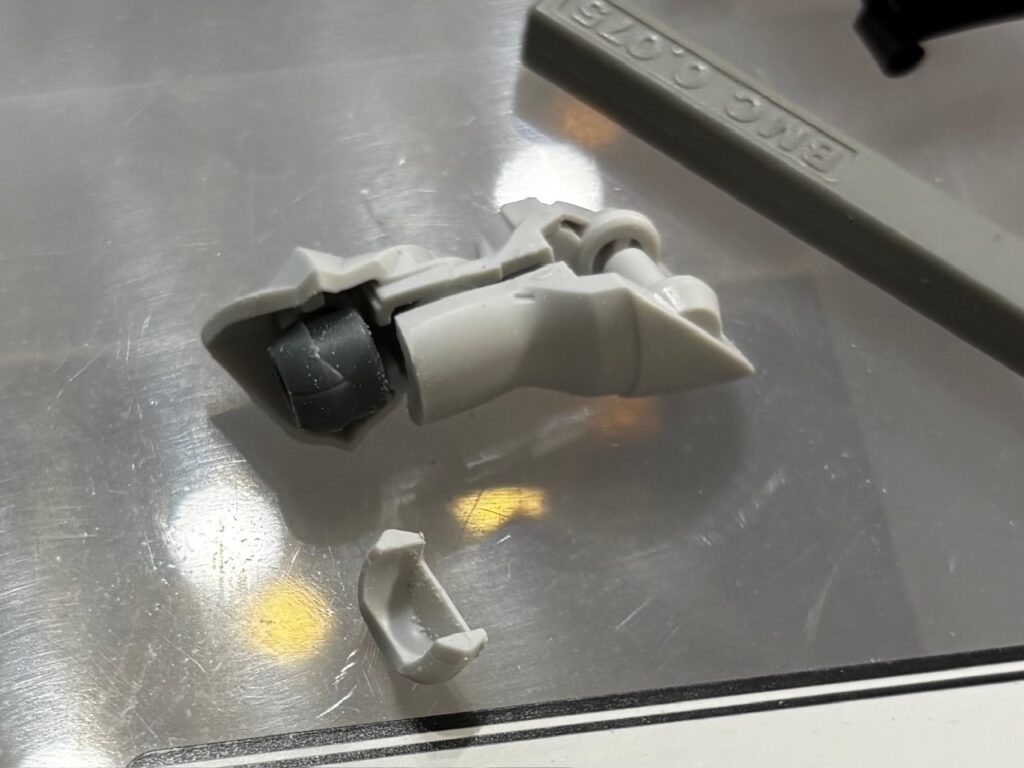 前腕は肘関節は同色なんでいいとして、手首部分がグレーのパーツになっています。